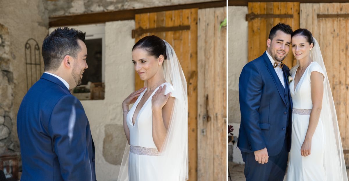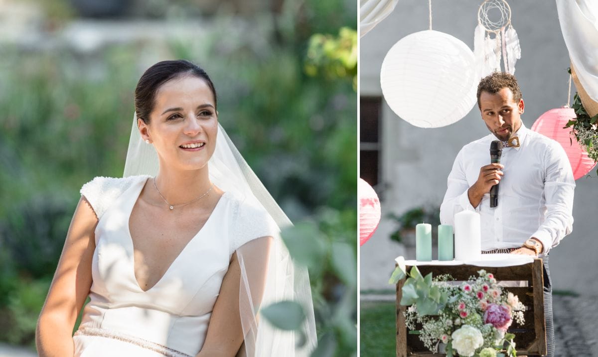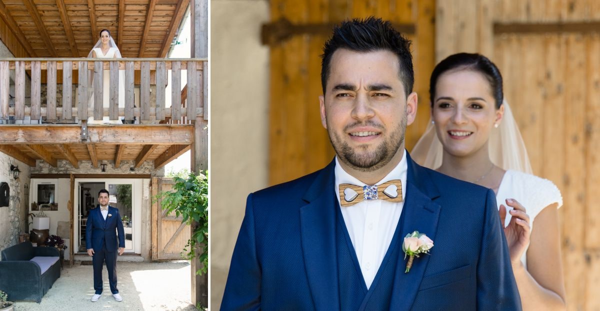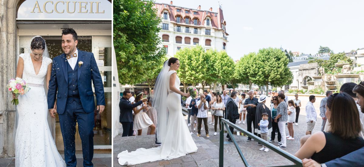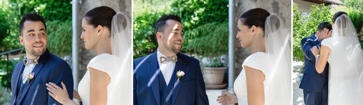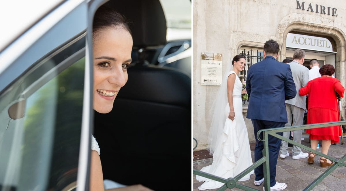 Le jour J, c’est dans un joli gîte que la mariée s’est habillée entourée de ses proches. Puis, le marié nous a rejoint pour une émouvante découverte et nous sommes partis sur Aix les Bains. Après la célébration par le maire du mariage civil dans une ambiance chaleureuse, tout le monde a repris sa voiture direction Marigny.