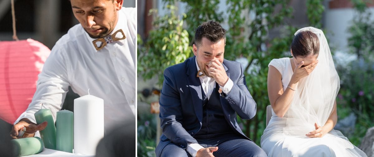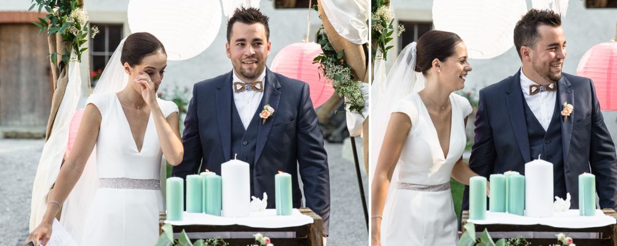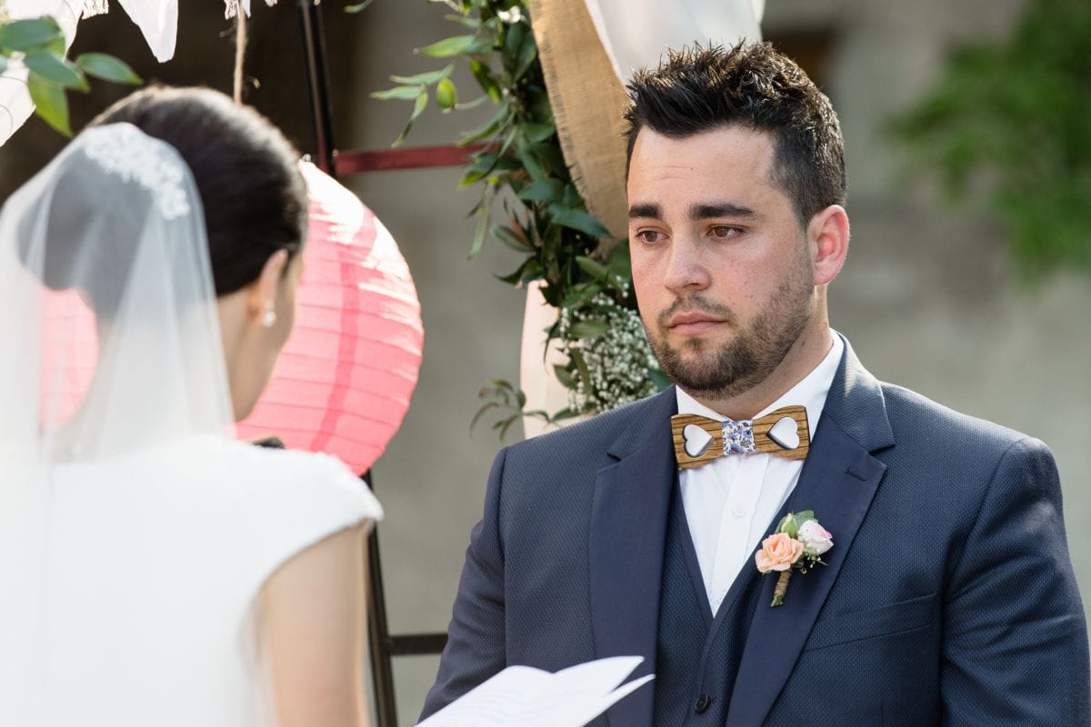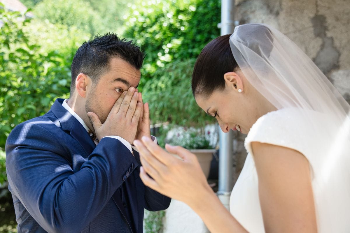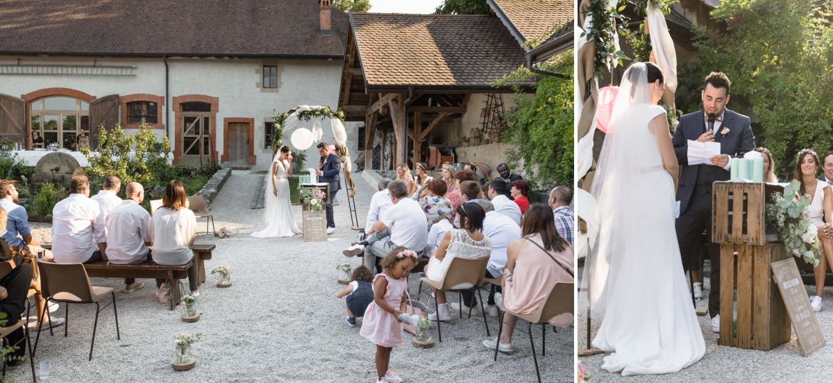 Le jour J, c’est dans un joli gîte que la mariée s’est habillée entourée de ses proches. Puis, le marié nous a rejoint pour une émouvante découverte et nous sommes partis sur Aix les Bains. Après la célébration par le maire du mariage civil dans une ambiance chaleureuse, tout le monde a repris sa voiture direction Marigny.