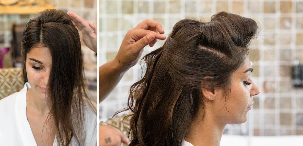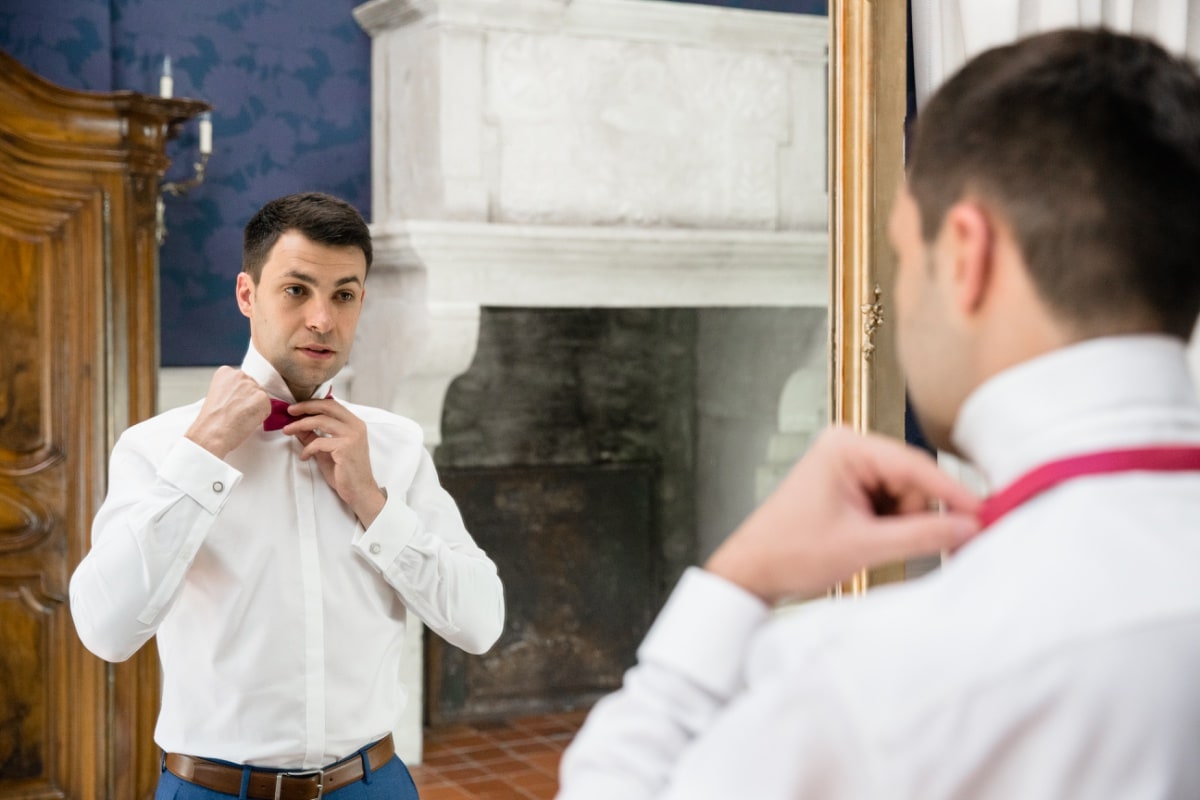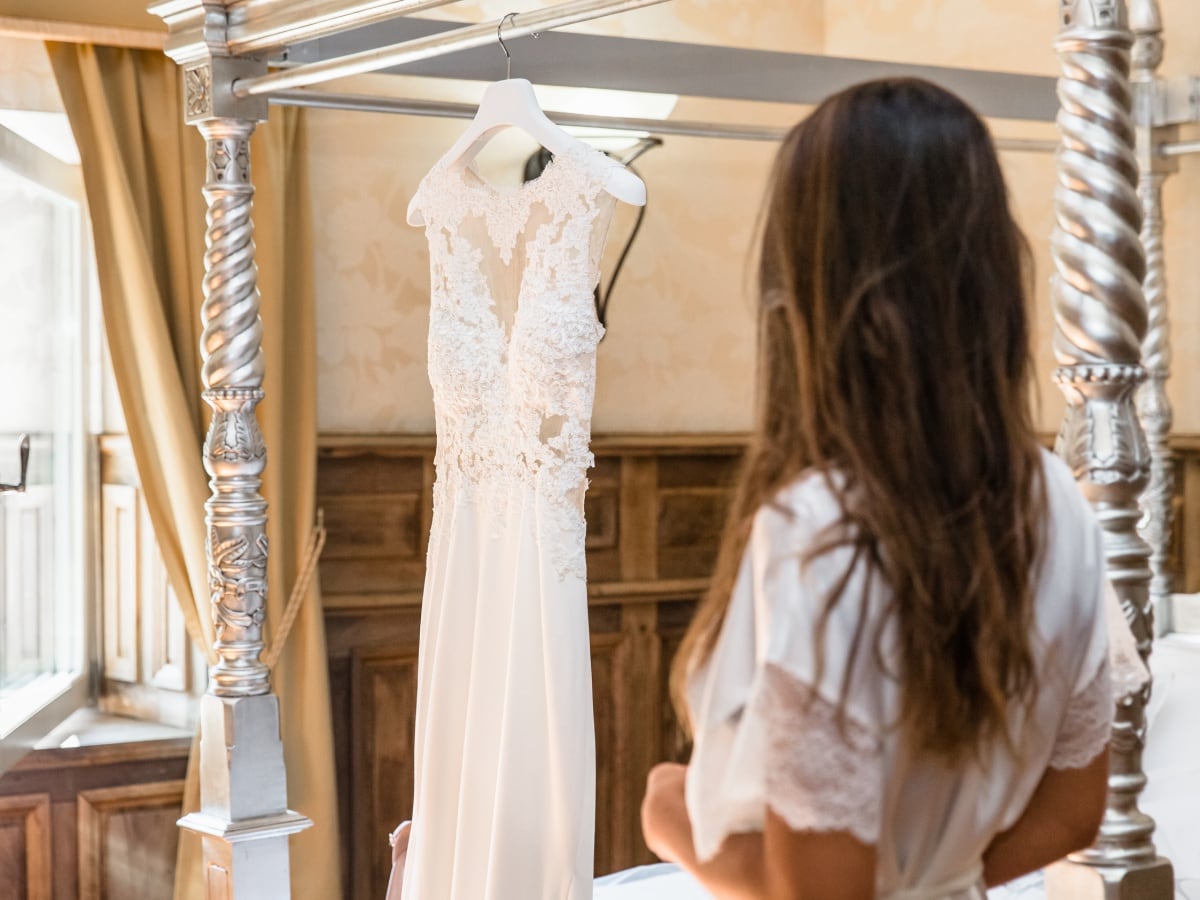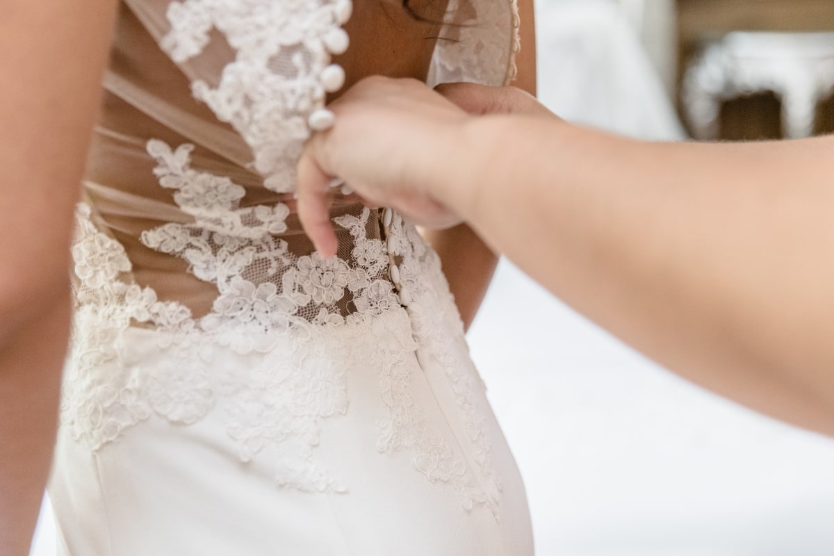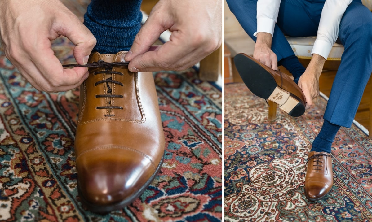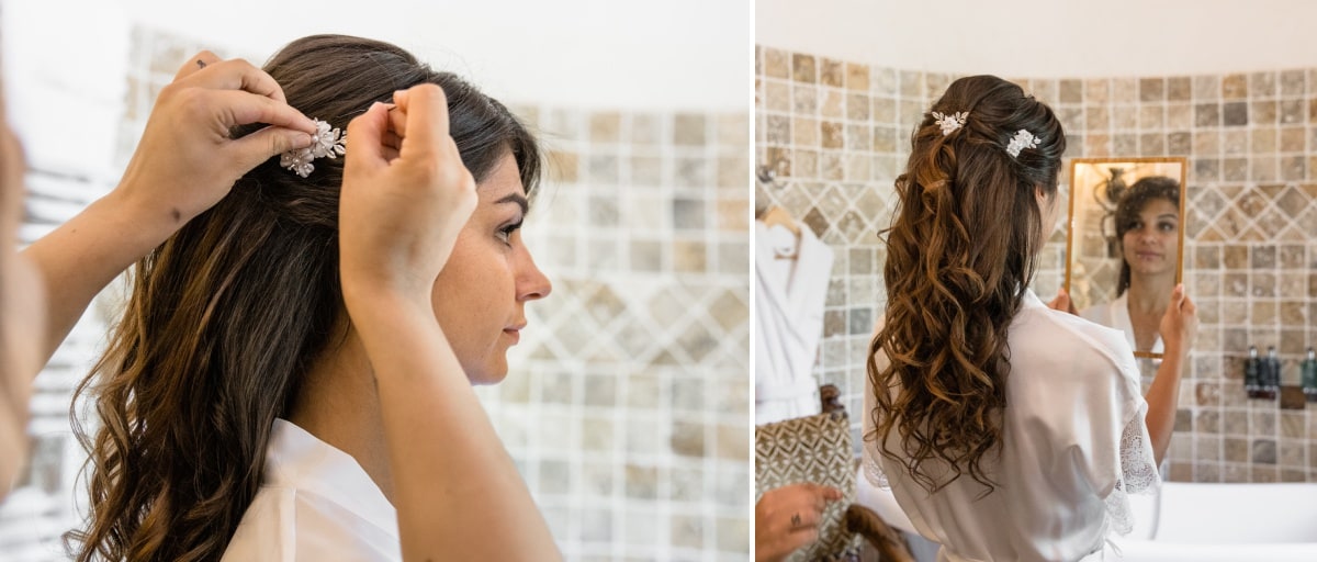 Dans un premier temps, j’ai fait les photos de la robe et des autres détails. Puis, il était déjà l’heure de se préparer. Tout d’abord, c’est le marié qui s’est habillé dans la suite nuptiale. Ensuite, je suis allée chez les filles. La mariée était d’une beauté éclatante dans sa robe chic et élégante. C’était magnifique quand elle a descendu les escaliers. A la suite du « first look », nous avons réalisé les photos de couple dans le parc. Mais le temps filait. Par conséquent, il fallait vite partir sur Annecy pour la cérémonie civile.