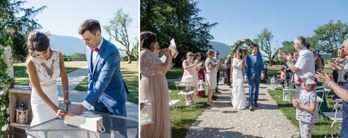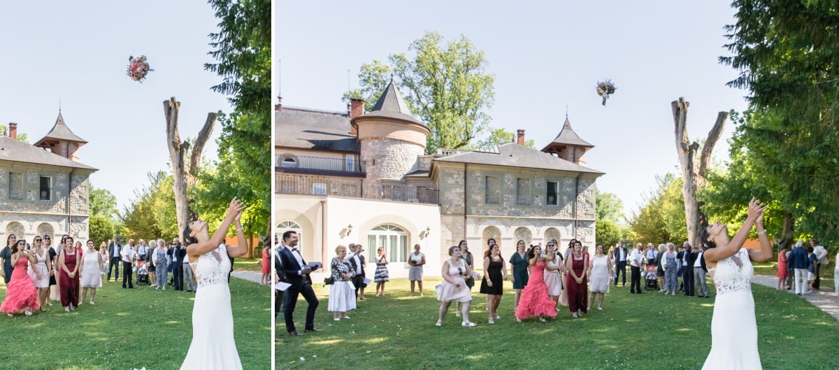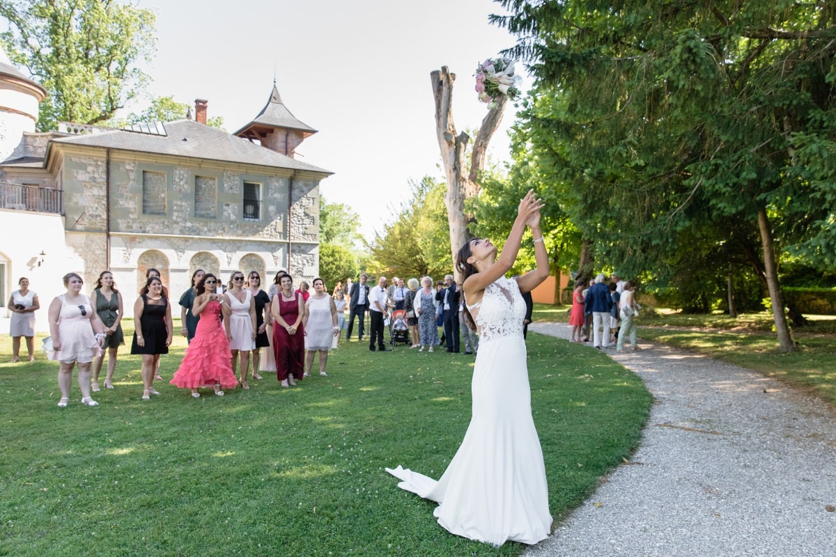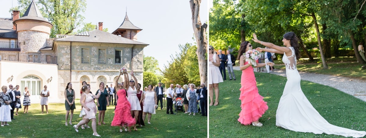De retour au Château de Servolex et après une citronnade, tout le monde a pris place pour le mariage laïque. Pour terminer la cérémonie, la mariée a lancé son bouquet. Après cela, ce fût le moment du cocktail et de la suite des réjouissances.