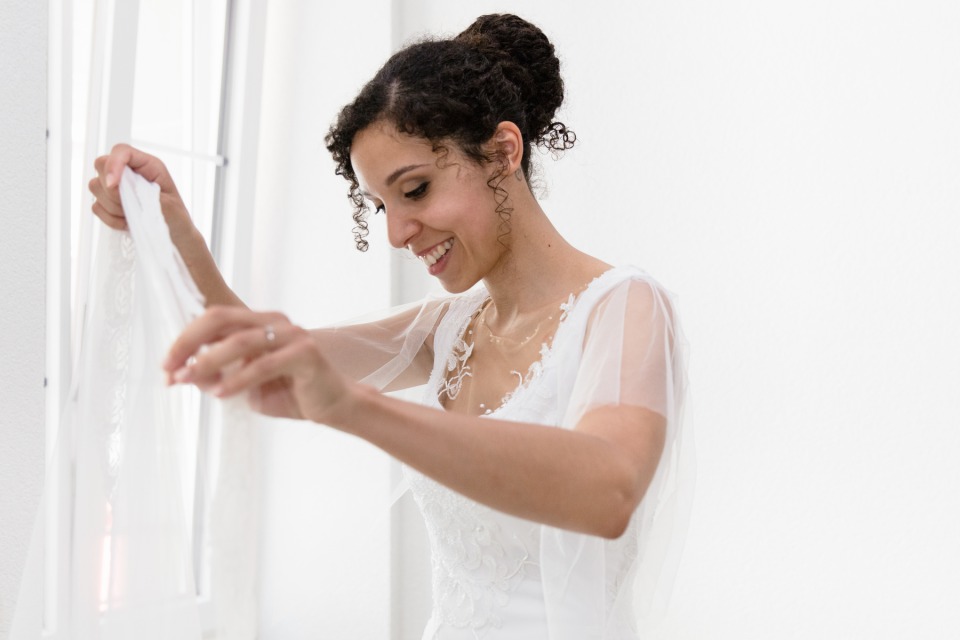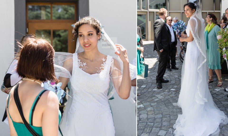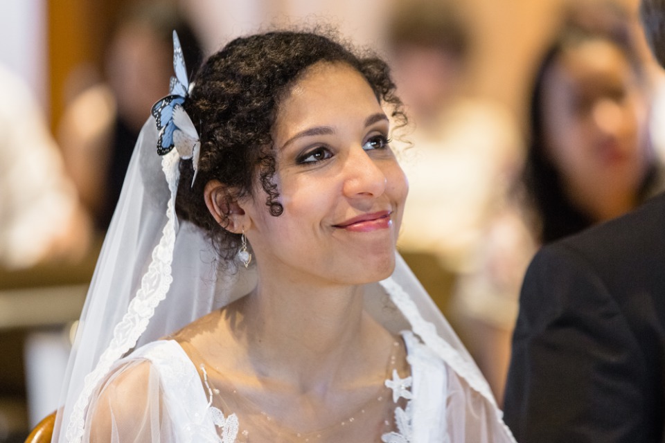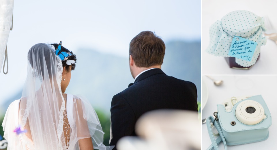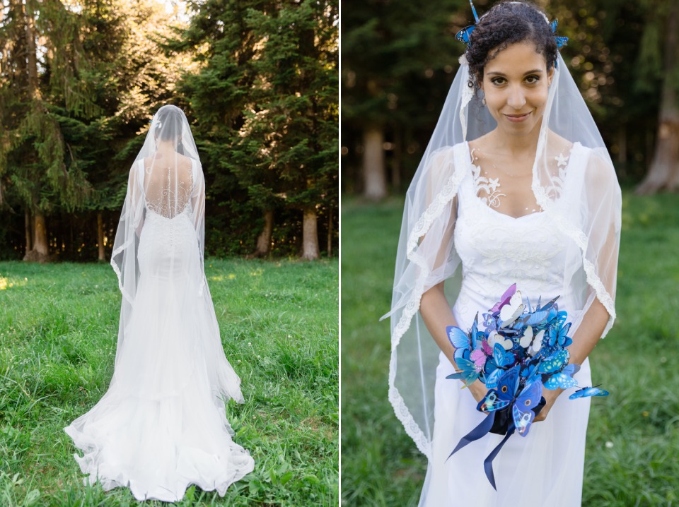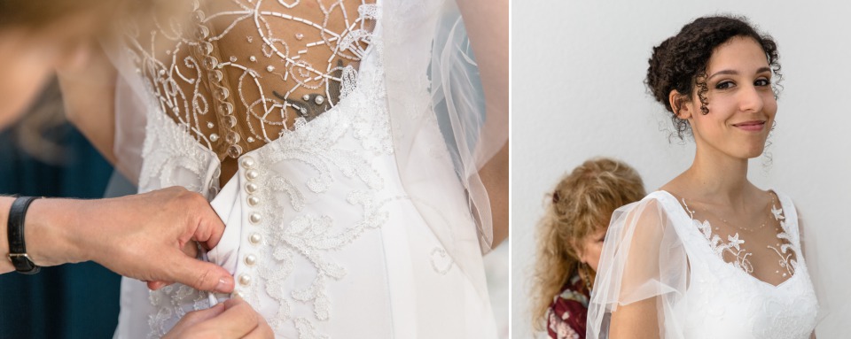 Quand la mariée met toute sa créativité et son talent pour réaliser sa propre robe, je dis « Bravo ! ». C’était touchant de découvrir les perles brodées selon les symboles de leur histoire et évidemment se fut une surprise pour le marié qui n’avait encore rien vu.