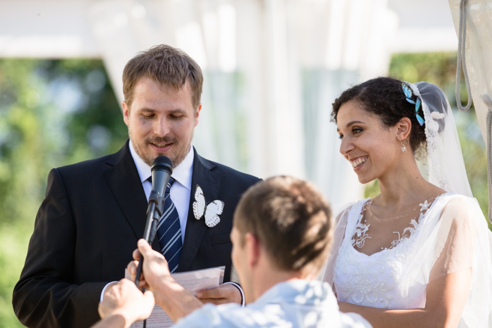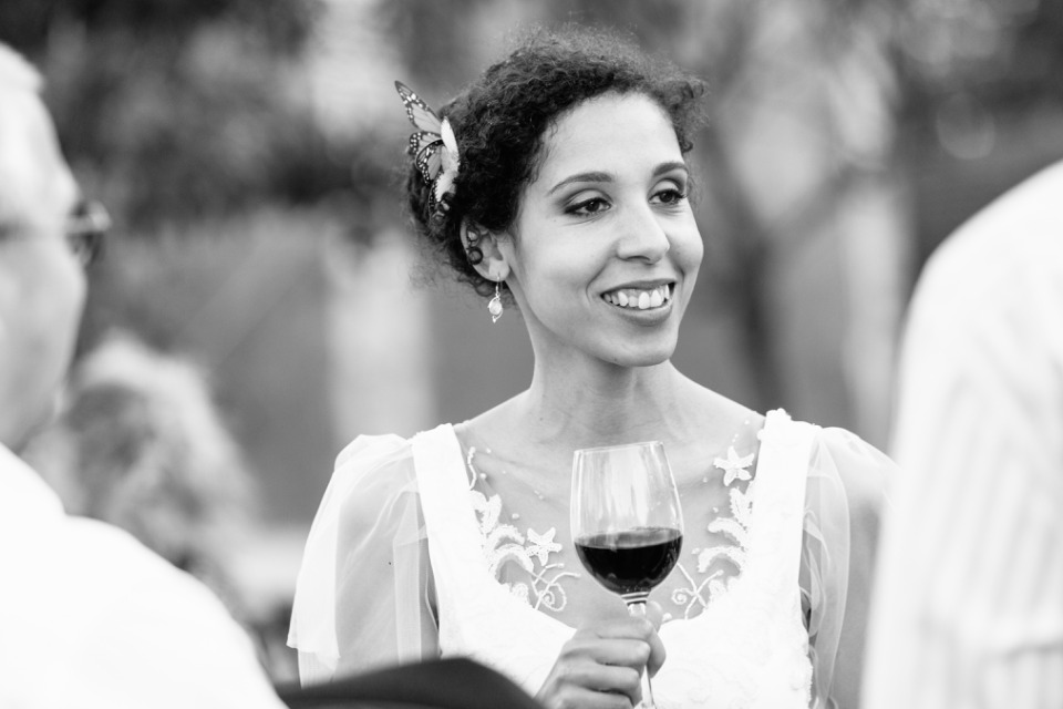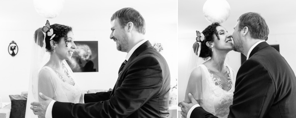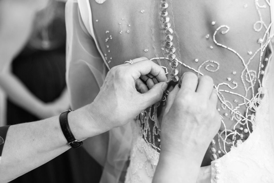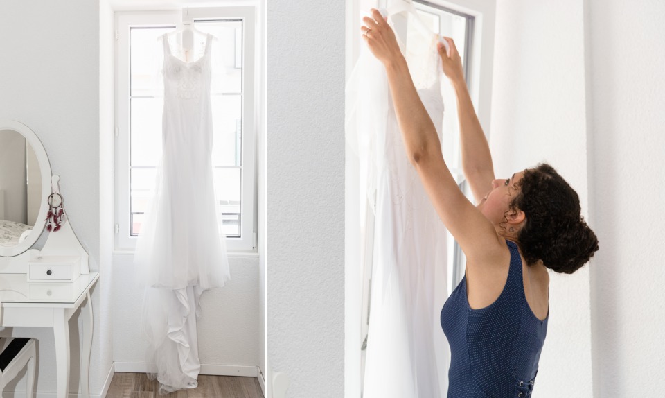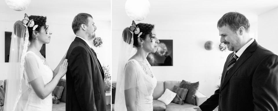 Quand la mariée met toute sa créativité et son talent pour réaliser sa propre robe, je dis « Bravo ! ». C’était touchant de découvrir les perles brodées selon les symboles de leur histoire et évidemment se fut une surprise pour le marié qui n’avait encore rien vu.
