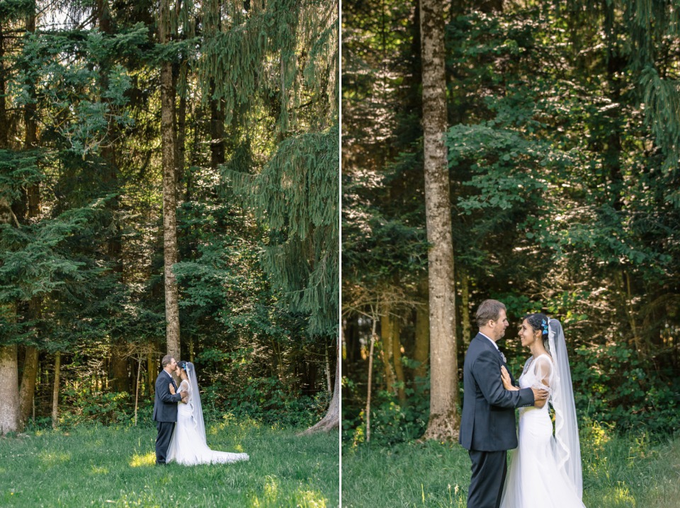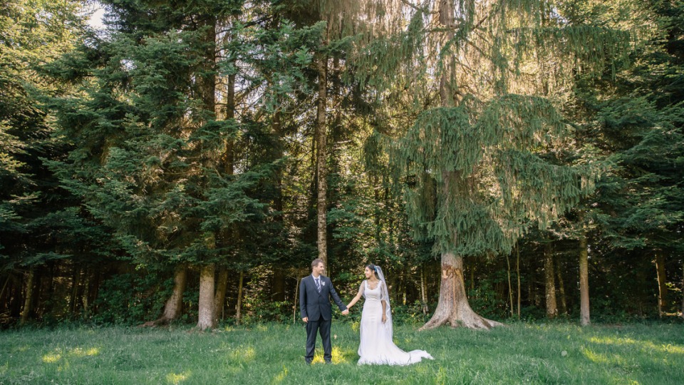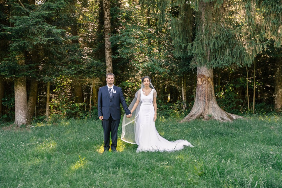 Le rendez-vous était donné du côté de Lausanne avant de rejoindre la maison de famille dans la vallée de l’Arve pour les festivités. C’était un mariage international où presque tout était traduit, du faire-part jusqu’aux discours afin que les invités puissent en profiter pleinement.